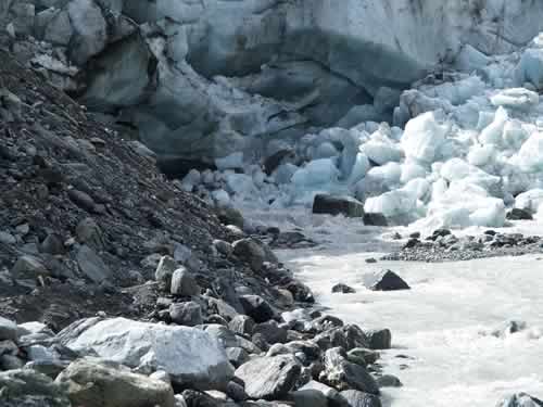 Since this was the foot of the glacier, we could make out the heavy stream of water coming from underneath the ice.