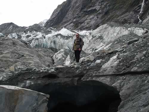And then onto the ice itself in order to give it a good look. Here's Mike atop an ice cave.
