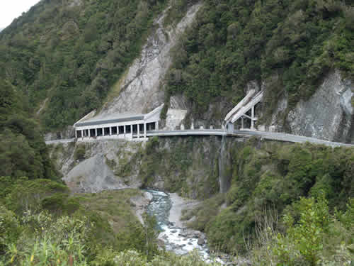 One of the more interesting parts of the drive to Arthur's Pass was crossing the viaduct shown below. It cost NZ$25M to build and was considered an engineering marvel in 2001 when it was completed. All in all, I'm happy we aren't on the windy old road, which used to have a grade of 16% (the new one is said to be a mere 12%).