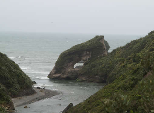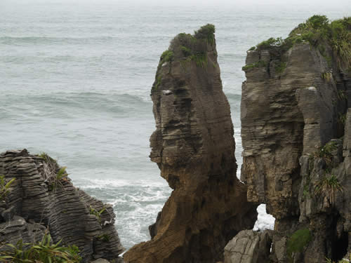 After lunch at Greymouth, we headed North up the West Coast. The road runs right on the cast most of its length, so it gives some wonderful ocean vistas. Unfortunately, the rain was still with us, so it was limiting our views of the Tasman and the beautiful rock formations along the coastline. When the rain died down, we had to contend photographically with some very limited vantage points. Although there were many spectacular views from the road, oft times we couldn't get to the same viewpoint from a safe location on the ground. However, here are a few of the formations that took our fancy: