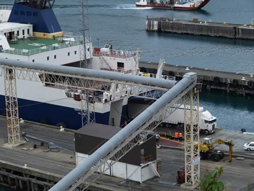 We pulled in to Picton at about 4pm today, where we got to preview the unloading of a boat similar to the one that we will be taking on Friday morning to the North Island. The process was pretty interesting, as the ferry has but one set of doors and all of the vehicles came off pointing forward, so they either have some way to turn them around or they are backing them in. I guess we find out on Friday morning.