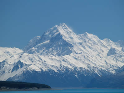 Today, the weather cooperated and we were able to get some much better pictures of Mt. Cook and other mountains in the area without all of the cloud cover that plagued us the day before.