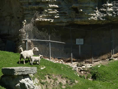 We stopped at a set of rock drawings along our way from Mt. Nimrod back to Timaru for lunch. The drawings themselves are interesting, but the electric fence that needed to be traversed "at your own risk" was equally so, as were the sheep guarding the way.