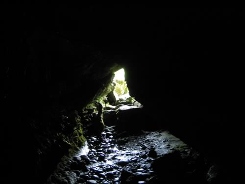 While heading north to Te Anau, we made a quick detour to follow the sun around a hill that looked intriguing. We got a nice picture or two of that hill and the one behind it, but on the way back noticed a small sign pointing to the right at "Limestone Cave." Intrigued, we ventured a couple of kms up the road to a pull-off. It turns out, this is a reasonable size public cave that stretches for 300m to the first point and probably a kilometer or more to the exit. We weren't prepared to do too much investigation, but a quick trip into the darkness before it became crawl-only was enjoyable (and about all my claustrophobic head could handle).
