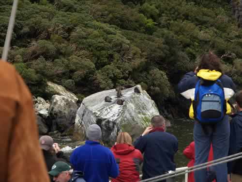 As one of the planned activities for the Fiordland part of our trip, we are taking cruises on both Milford Sound and Doubtful Sound. Today's cruise lasted about 2½ hours mostly in the sound, with a small portion of the trip spent in the Sea of Tasman, just off of St. Anne Point. Recent rainfall (including some while we were on the trip) has made the walls weep from every rockface, causing an astounding number of gorgeous wateralls. However, the sea was relatively calm with swells only to a meter or so, making the trip into the Tasman very enjoyable.